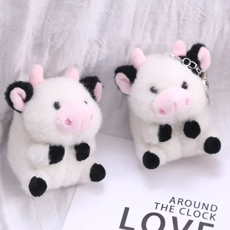 Chaveiro de Pelúcia Vaca, Mini Pelúcia 12 cm, Brinquedo Infantil, Presente para Crianças, Pingente Fofo, Presente de Aniversário