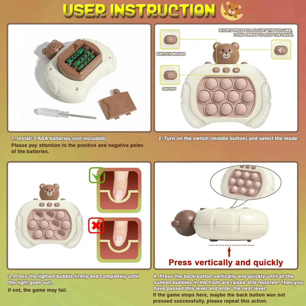 Com mecanismo de bolhas que estouram e música dinâmica 🎵, proporciona uma experiência tátil e sonora muito divertida. -