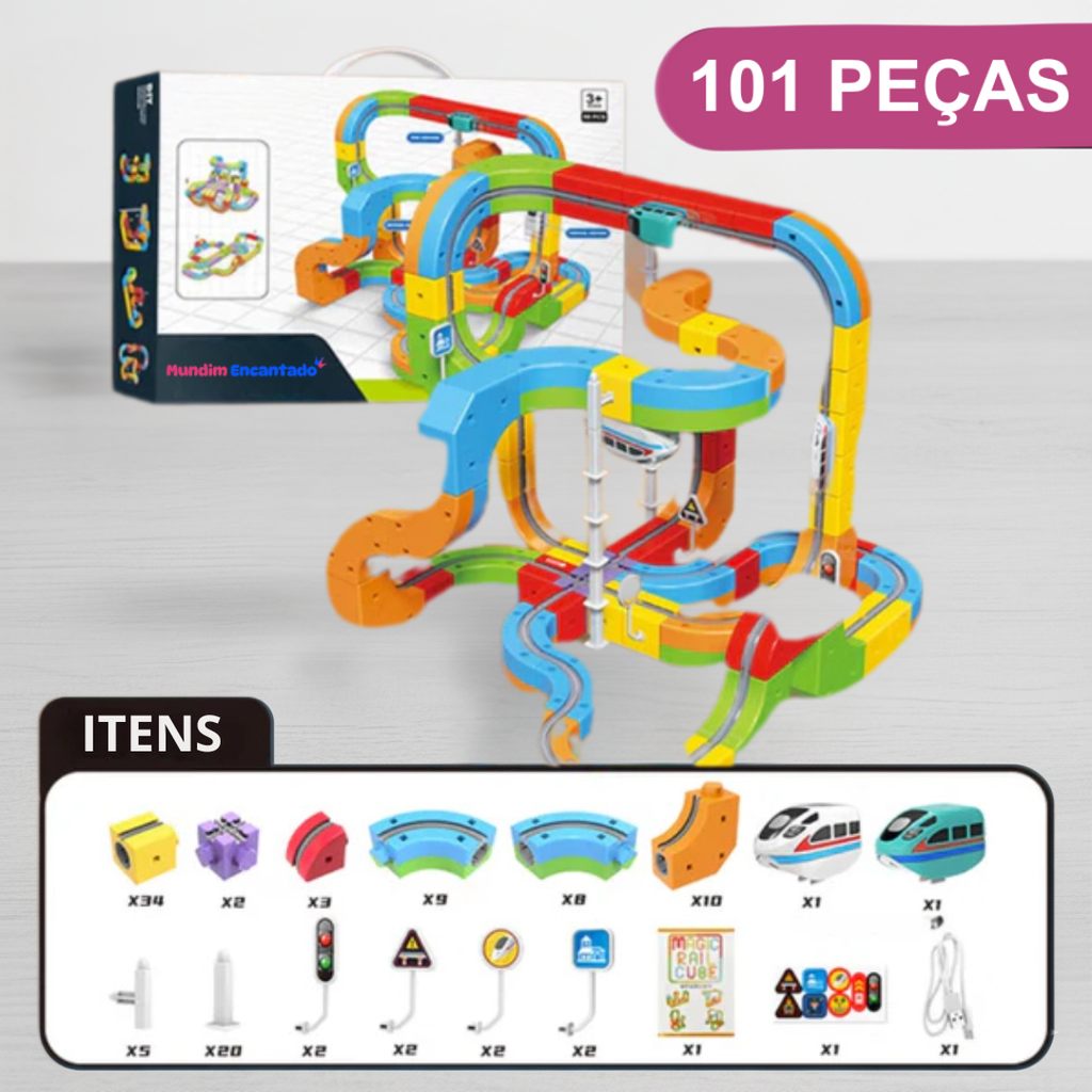 Leve para casa não apenas um brinquedo, mas uma verdadeira jornada de descoberta e aprendizado com o Mini Trem Magnético, a estrela do nosso Trilho Magnético Educativo.